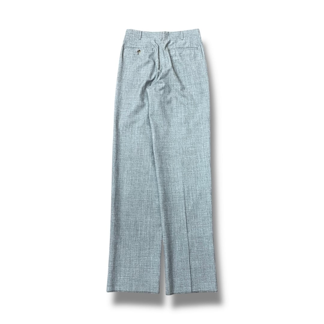 フロントはツータック仕様で、腰まわりに程よいゆとりを持たせつつ、裾に向かって落ちる美しいストレートシルエット。