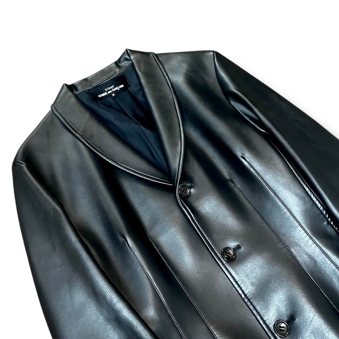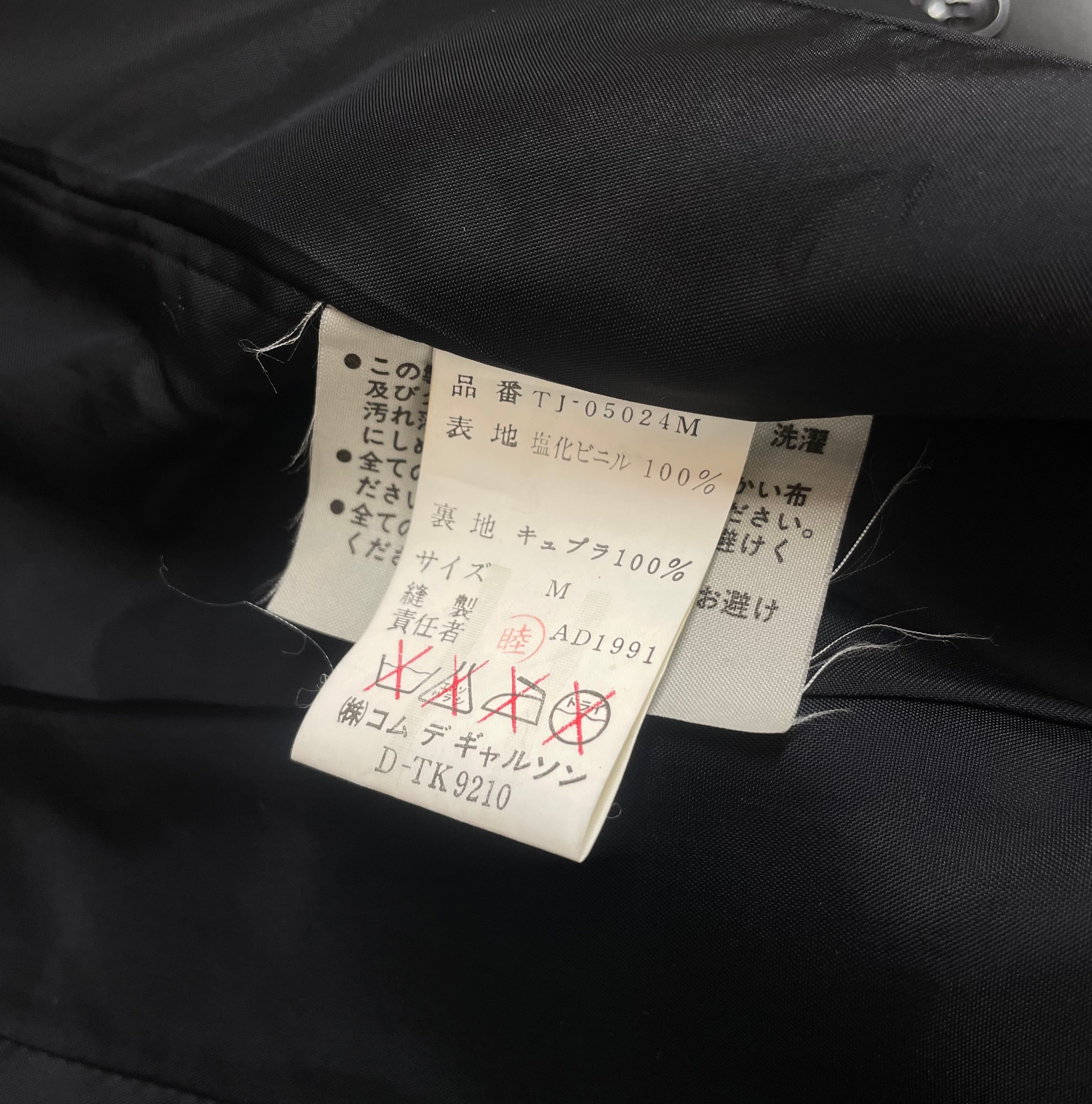 リアルレザーのような艶感と質感を持ちながら、当時のギャルソンらしい素材実験・反モード的アプローチ が色濃く表れた一着です。