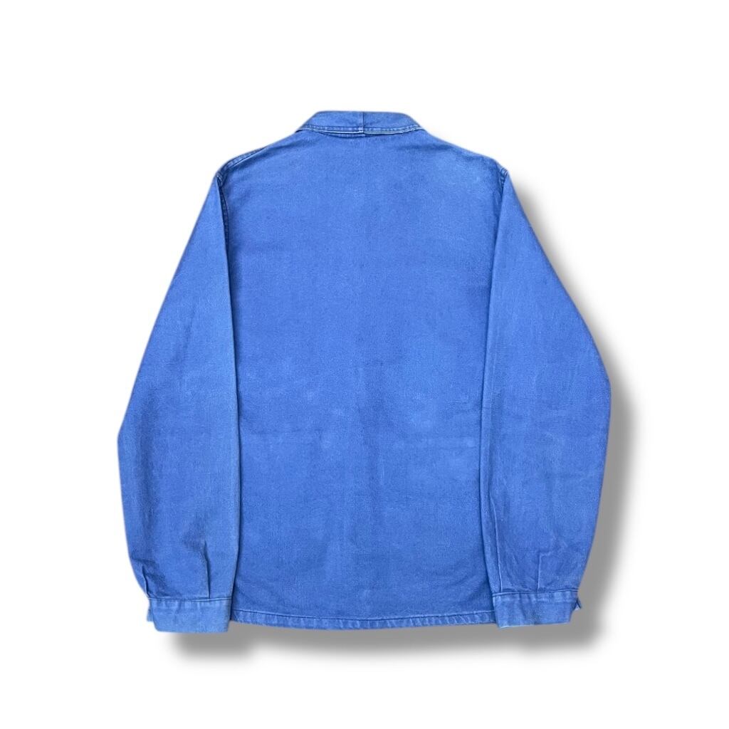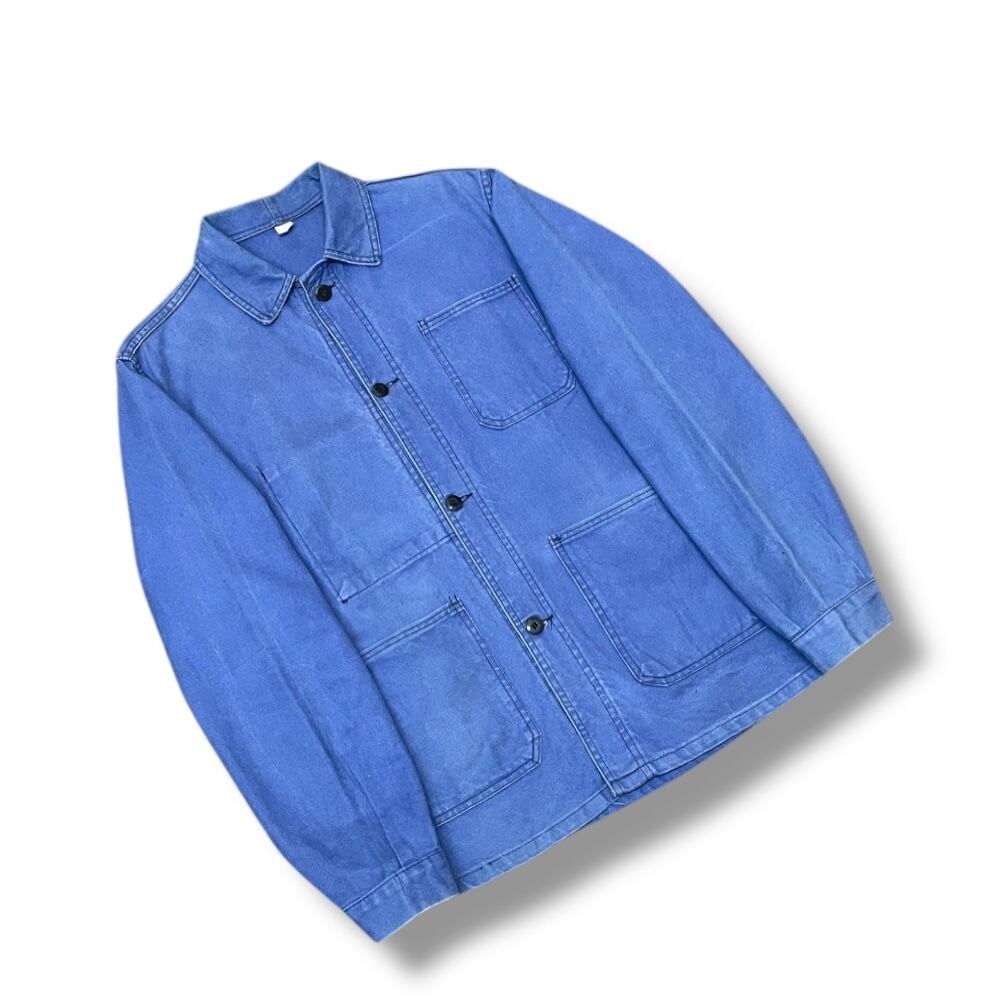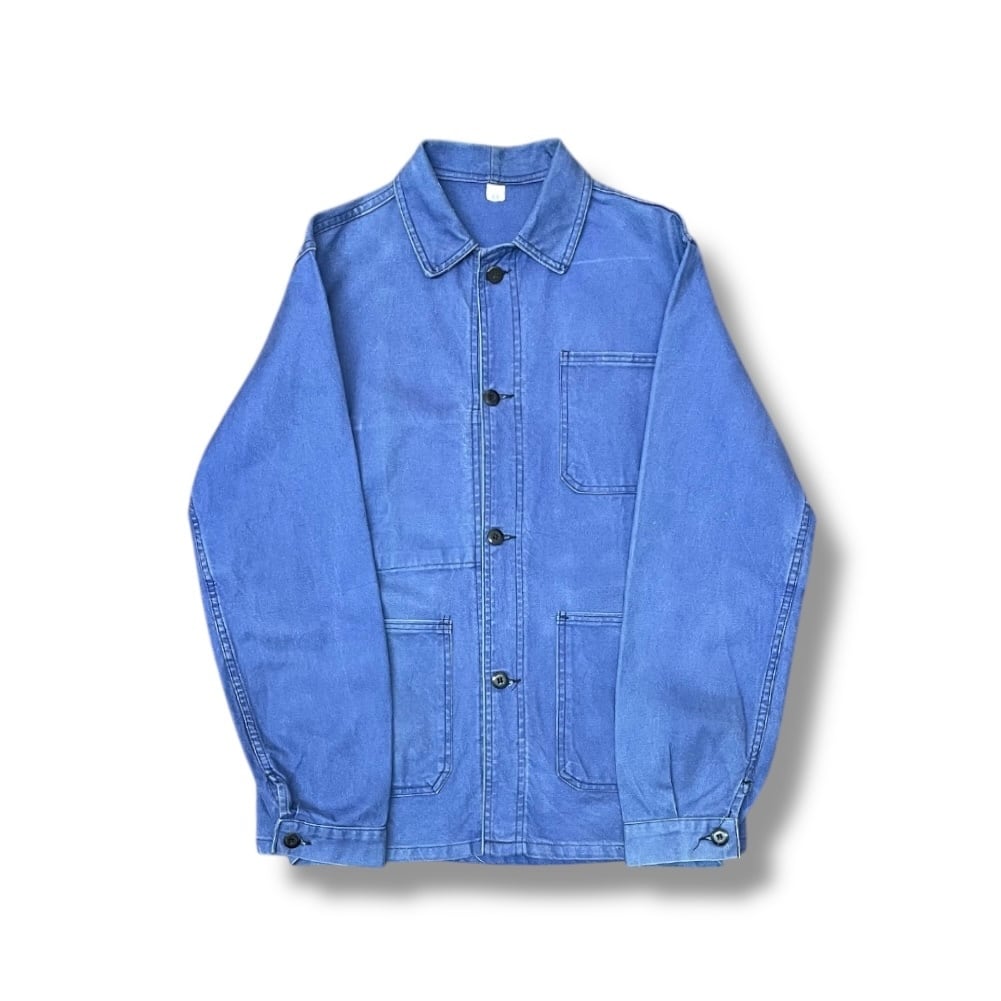 インディゴではなく、当時特有の染料によるフレンチブルーが特徴的で、ワークウェアならではの実用性と無駄のない美しさを併せ持った一着です。