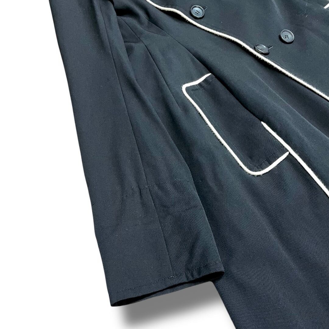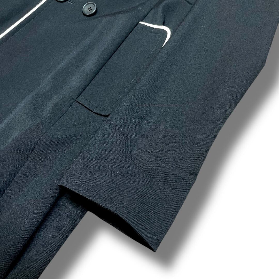 ブラックボディに映えるホワイトのパイピングを、フロント、襟元、ポケット、袖口へと連続的に配した象徴的なデザイン。