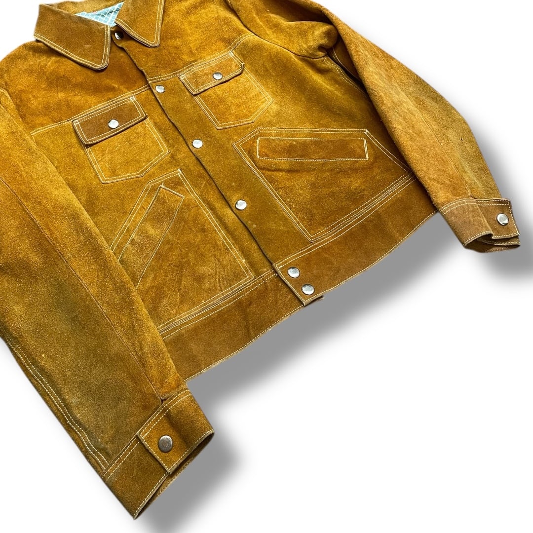 ブラウンスエードを贅沢に使用したトラッカータイプのレザージャケットでフロントのV字切替、フラップ付き胸ポケット、スナップボタン仕様と、王道3rdタイプを踏襲した完成度の高いデザイン。