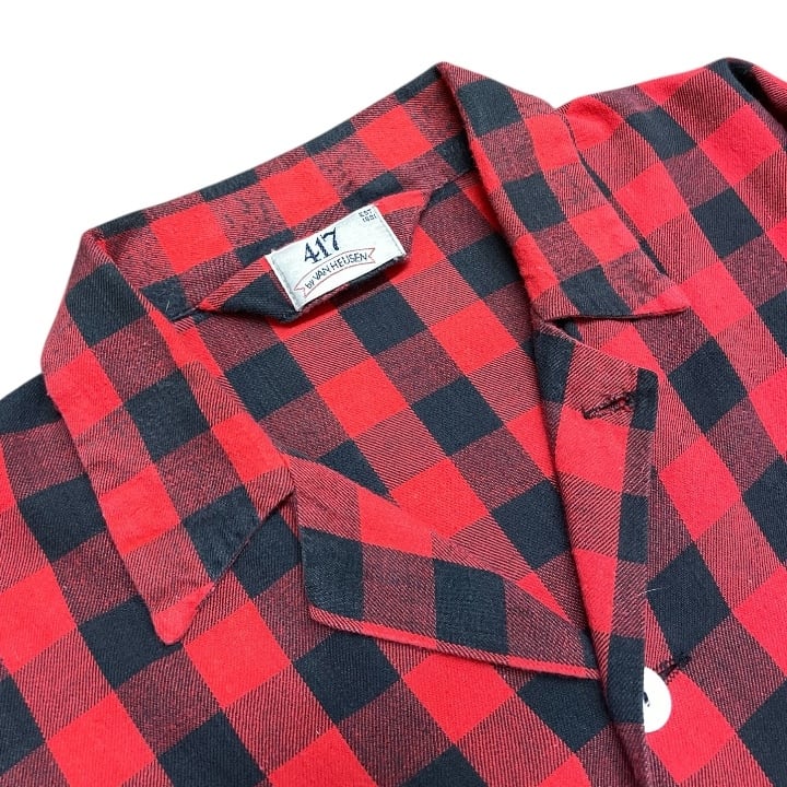 90s VAN HEUSEN Buffalo Check Open Collar Shirt