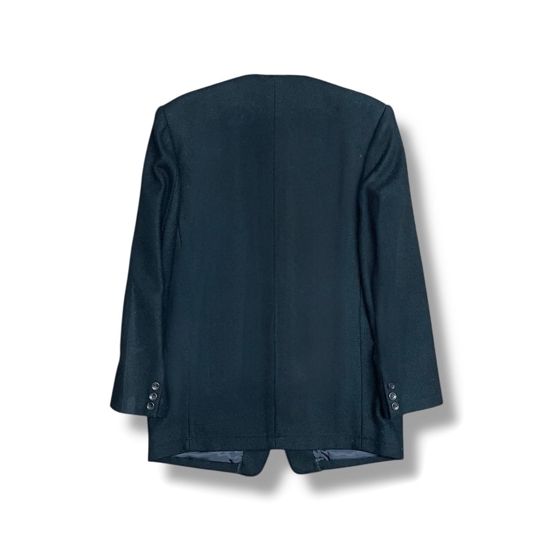 フロントは表ボタン仕様しレザーパイピングをと無機質になりすぎずモードな印象とYohji Yamamotoらしさを感じる1着。