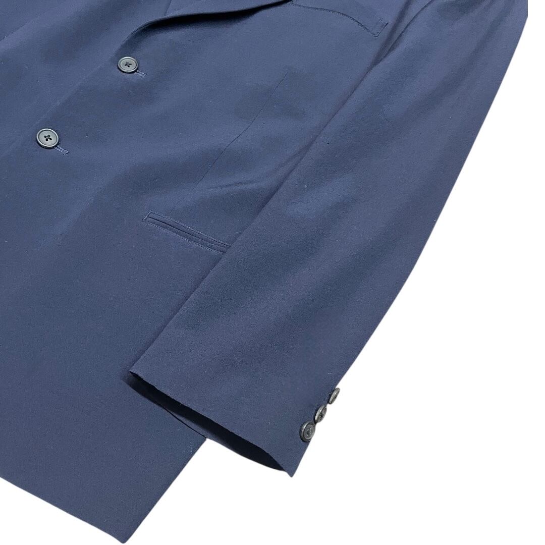 クラシックな2ボタン仕様のシングルテーラードをベースにしながら、ややゆとりを持たせたボックスシルエットに仕立てられており、90年代の Y’s for men らしいミニマルで力の抜けたバランスが特徴。深みのあるネイビーカラーとシンプルなデザインにより、素材の質感とシルエットの美しさが際立つ仕上がりとなっています。