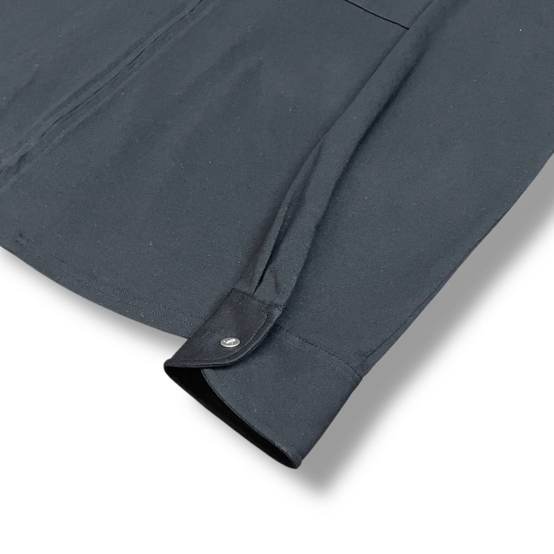 ブラックのクリーンなボディに、メタルジップを配したシンプルで洗練されたデザインが魅力の一着です。一般的なシャツ生地とは異なり、程よく肉感のあるコットン素材を使用。