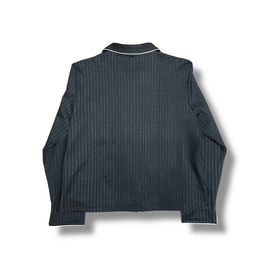 クラシックなスイングトップ型をベースに、スーツ地のような細かなピンストライプ生地を使用した一着。カジュアルなジップジャケットにテーラードの要素を落とし込んだ、ミニマルで洗練されたデザインが特徴です。